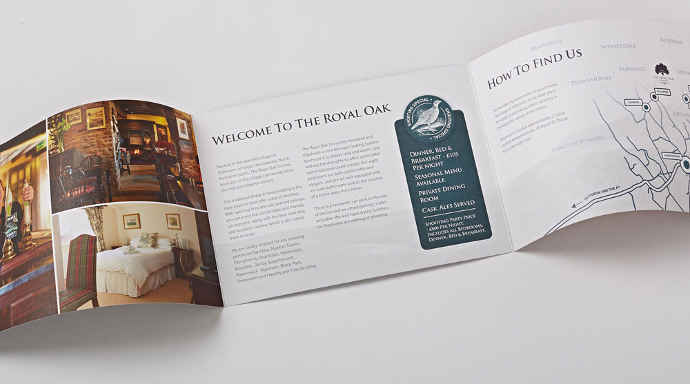 The Royal Oak near Pickering has been a pub since the mid-seventeenth century. Their requirement was to create an identity that they could roll out across the pub. They required menus, stationary and a simple website.