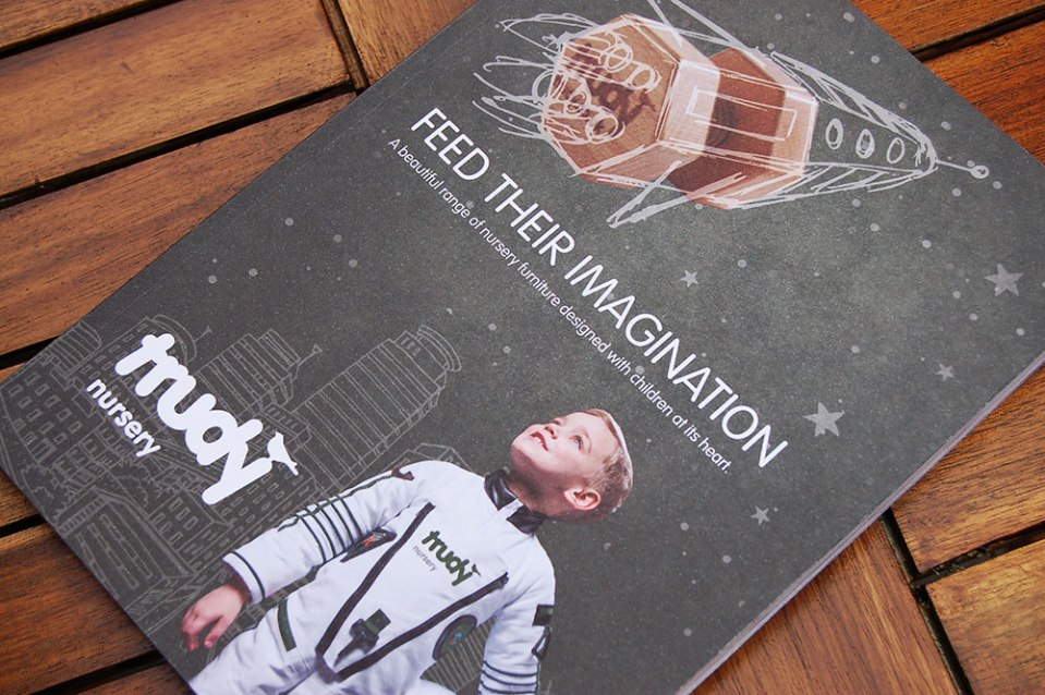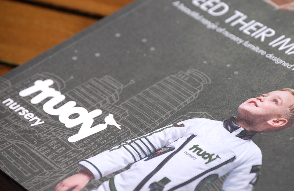 The logo has a little bird perching on the end. Trudy nursery has animal toys in the range and a bird was used on a piece of play furniture. This pulled everything together to create the logo.