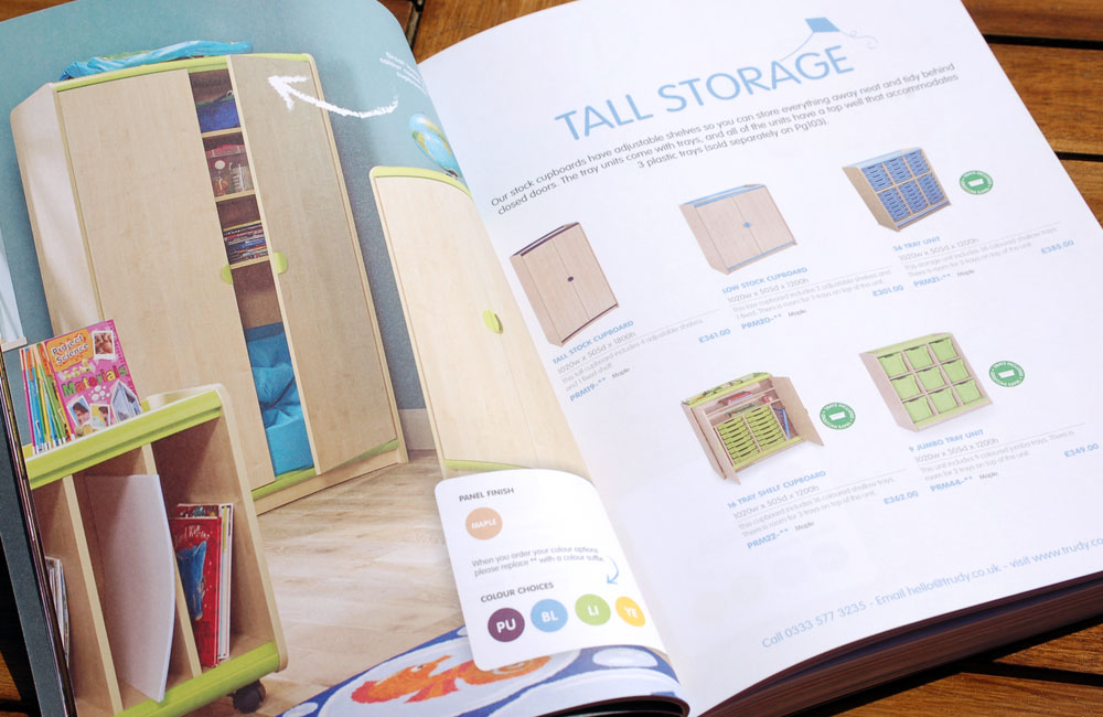 Trudy primary furniture was launched several years ago and has proved to be successful within the education market. This catalogue was produced to mirror the Trudy nursery catalogue in style and pull the two brands together to create a single early years offering.